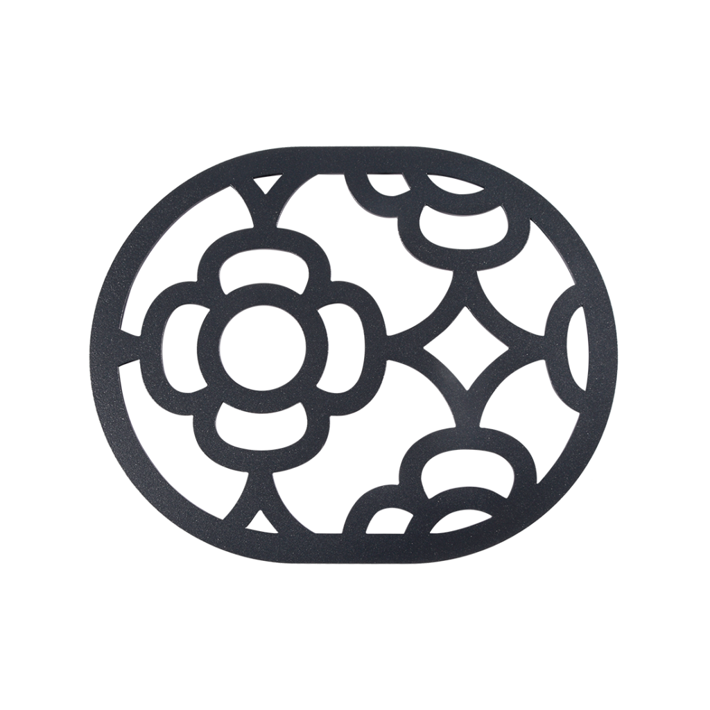 De Fermob Onderzetter Lorette van 22 x 17,5 cm is de nieuwste toevoeging aan de Lorette-collectie en vormt een aanvulling op Fermob’s uitgebreide assortiment decoratieve buitenaccessoires. Lorette, een collectie ontworpen door Frédéric Sofia, belichaamt alles wat Fermob zo speciaal maakt: een zeer sterke grafische ambitie gekoppeld aan een beheersing van geperforeerd metaalwerk dat harten en geesten sneller doet kloppen. En met dit stuk heeft het merk het opnieuw gedaan! Zoals elk meubelstuk en accessoire in de Lorette-collectie heeft deze onderzetter hetzelfde iconische, delicate, oosterse patroon geïnspireerd op mashrabiya’s dat een uniek vleugje elegantie geeft aan elk oppervlak. Maar het is meer dan alleen een patroon. Bovenal is het een direct herkenbare handtekening. Deze fijn versierde tafels, stoelen, kussens en onderzetters voegen een vleugje exotisch toe aan elke binnen- of buitenruimte. Deze 100% metalen onderzetter is professioneel lasergesneden om een traliewerkpatroon met een stijlvol bloemmotief te produceren. Het resultaat is een lichtgewicht, bijna transparant stuk dat elke centimeter van de industriële knowhow van Fermob bevat. Deze onderzetter is verkrijgbaar in verschillende exclusieve tinten van de kleurenkaart van het merk en is ontworpen voor gebruik buitenshuis, dankzij onze gerenommeerde poedercoatings die bestand zijn tegen UV-stralen en de slechtste weersomstandigheden. Dit nieuwe decoratieve metalen accessoire wordt hier in Frankrijk gemaakt – en het is een gegarandeerde impulsaankoop. Met zijn visuele aantrekkingskracht en functionaliteit in gelijke mate, zal hij zeker een thuis vinden in elke binnen- of buitenruimte. Gewoon onweerstaanbaar! Onze winnende combinatie? Laat het prachtig gebogen patroon van de Lorette onderzetter centraal staan door hem te combineren met een ultramoderne tafel, zoals het model uit de Calvi collectie. Een gewaagde zet die je doet dromen van verre landen.