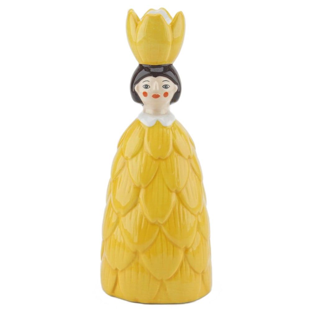 Wat een vrolijke verschijning! Deze speelse kandelaar in de vorm van een vrouw met bloem in het haar brengt kleur en karakter in huis. De zonnige gele tint fleurt direct je interieur op – of je ‘m nou op een plankje, dressoir of op tafel zet. 🌼💛