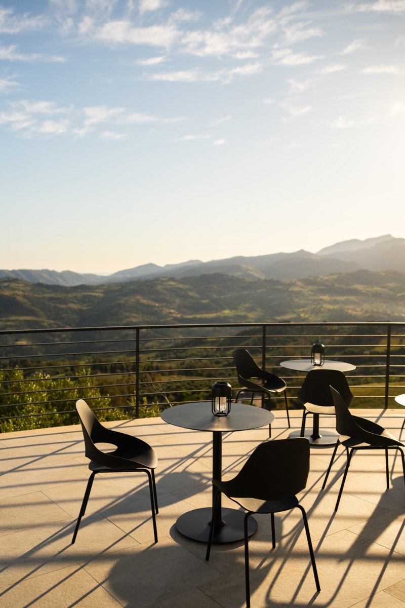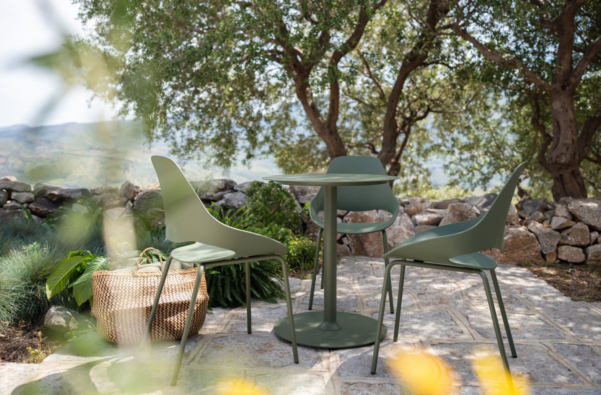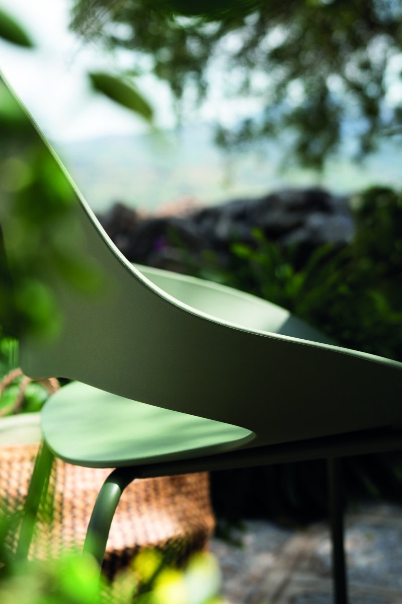 Het slanke frame van gepoedercoat staal zorgt voor een stevige basis en maakt de stoel geschikt voor intensief buitengebruik. Regen, zon of dagelijks gebruik – deze stoel blijft mooi en onderhoudsvriendelijk.