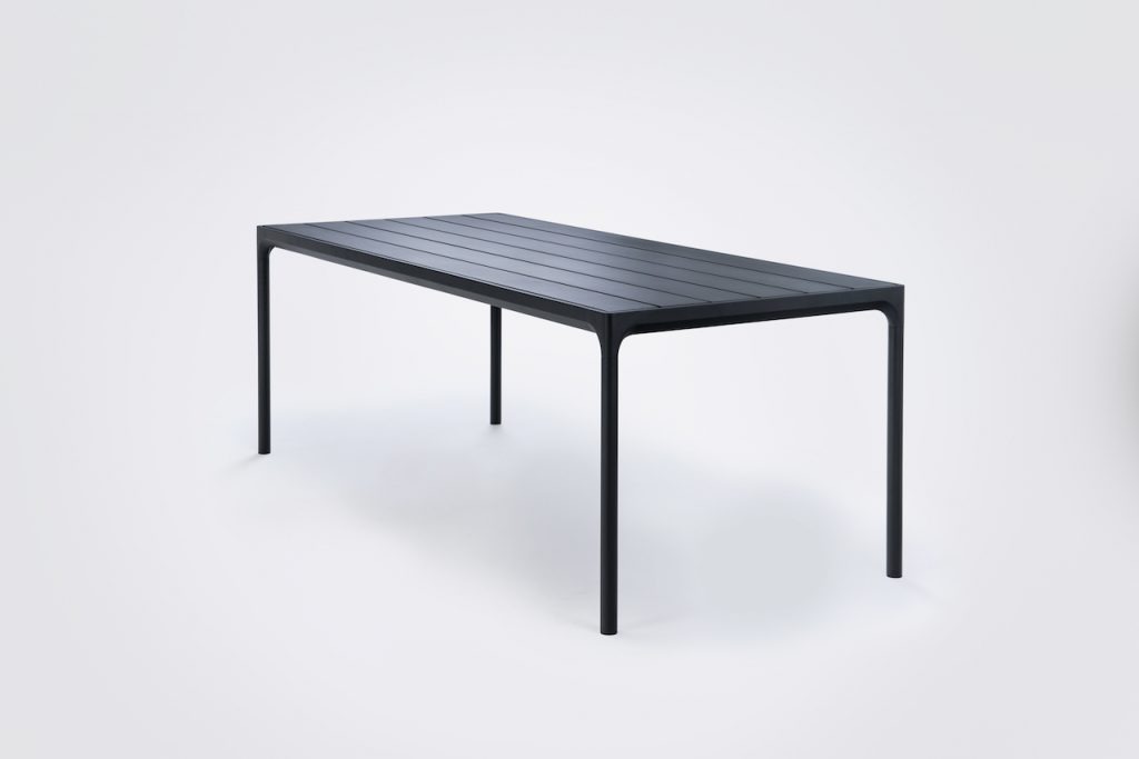 Een strakke eenvoudige tafel uit de serie Four van het Deense merk Houe. Volledig opgetrokken uit aluminium en dus uitermate geschikt voor langdurig buitengebruik. Met een hoogte van 74 cm geschikt voor bijna alle stoelen, ook van andere merken.