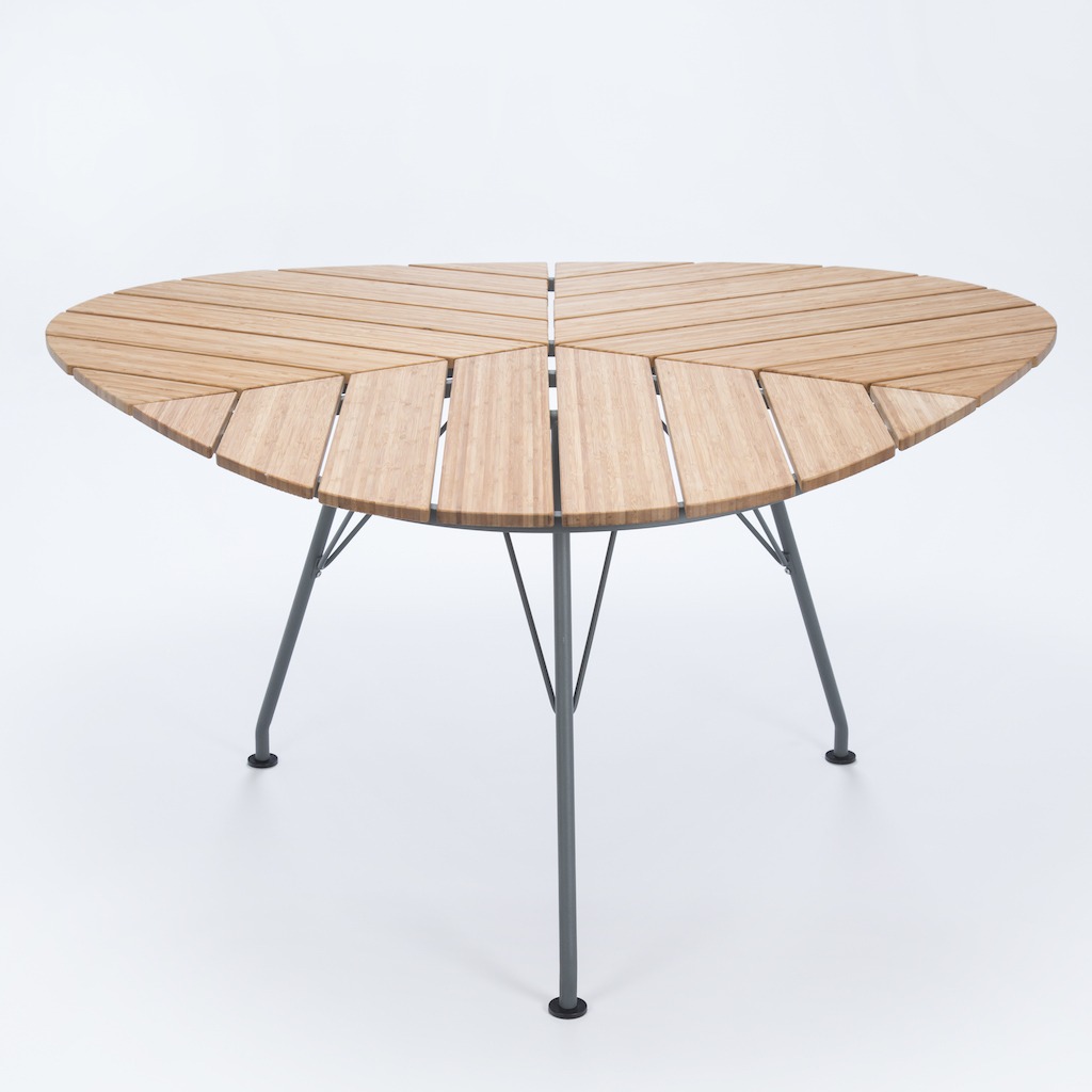 Met zijn Dark Grey onderstel en zijn bladvormig Bamboe tafelblad is dit een topstuk van de Deense designer Henrik Pederson. Met 8 of 9 personen aan deze riante tafel is geen probleem, de maatvoering van 146×146 is namelijk ruim te noemen.