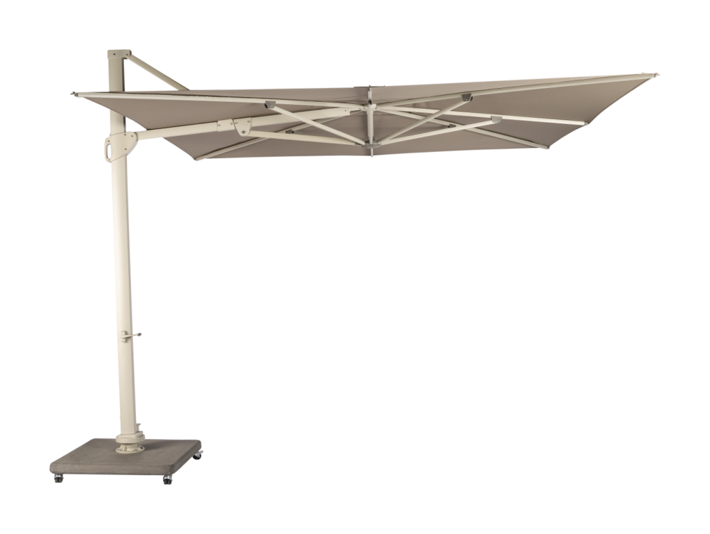 De Vince parasols zijn de vrijhangende modellen binnen de Max & Luuk collectie. Deze zweefparasols kunnen op een verrijdbare voet worden gezet, zodat ze over op het terras voor schaduw kunnen zorgen. Daarnaast kunnen ze 360 graden draaien op de voet. Als extra optie kan het doek schuin gezet worden, om zo een lange schaduw te creëren. De parasol sluit boven tafelhoogte.