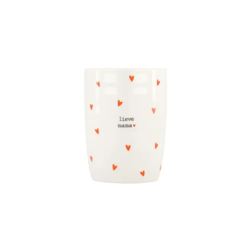 De mok is wit met rode hartjes en de tekst “lieve mama” in zwarte letters. Perfect als cadeau voor de allerliefste mama of gewoon voor jezelf!